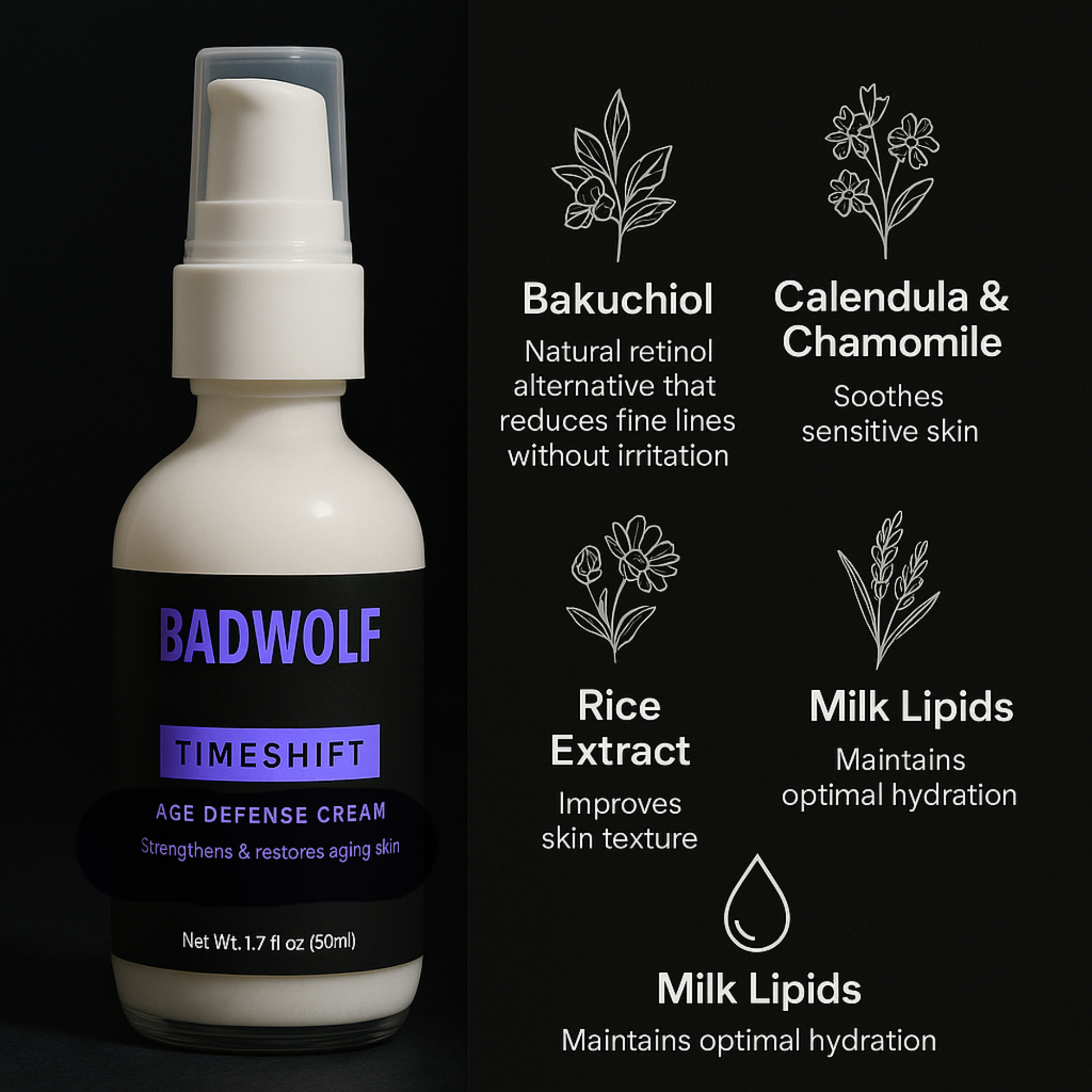 Our Timeshift moisturizer harnesses the power of Bakuchiol – nature's retinol alternative that delivers real results without the redness or peeling.